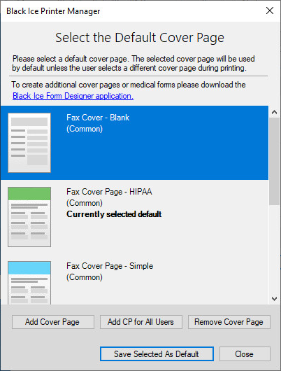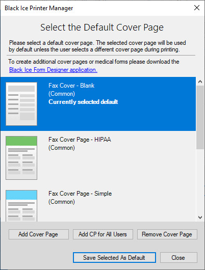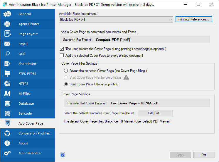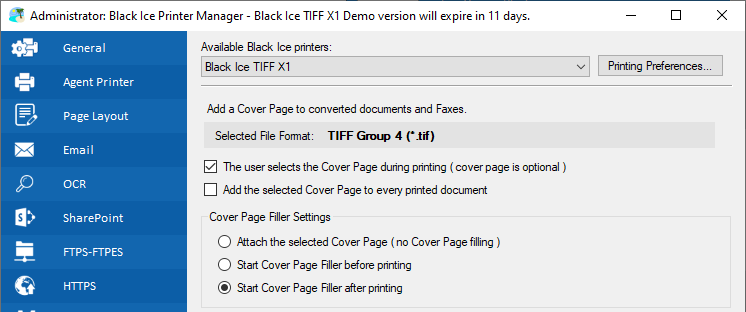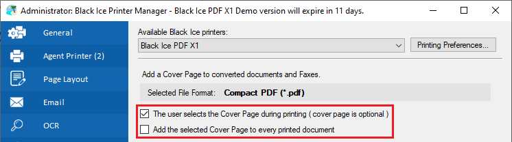 • Start the Cover Page filler before printing – If selected, the built-in Cover Page Filler window appears before printing the document. The "Start the Cover Page filler before Printing" option is not available for PDF file format. To read more about Black Ice Software’s built-in Cover Page Filler, please refer to our Online Manual.