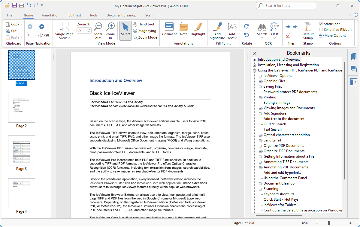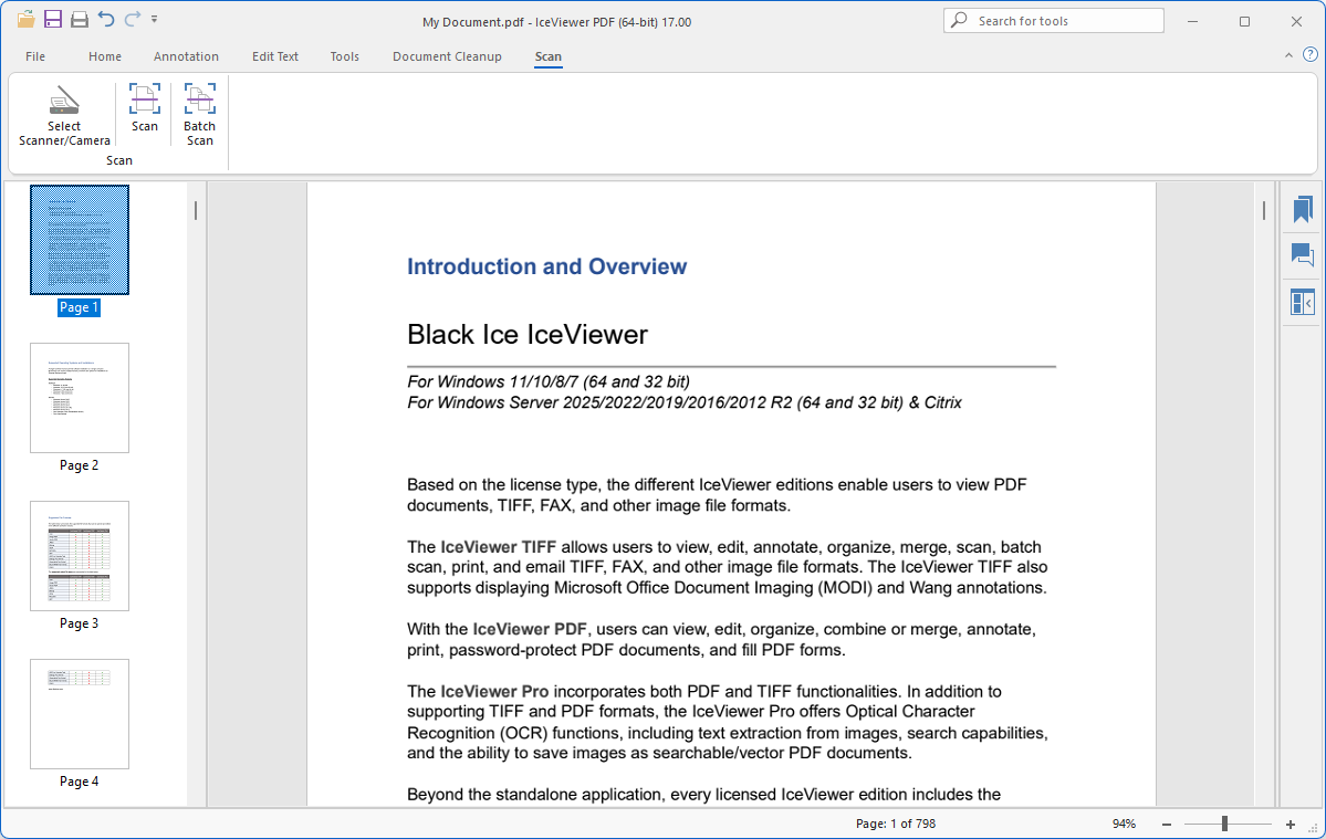 The IceViewer PDF offers a variety of view modes including multipage, fit-to-window, fit-to-width views, and more...