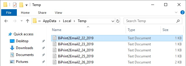 (for example: C:\Users\[USERNAME]\AppData\Local\Temp\ BiPrint2Email2_22_2019.txt)