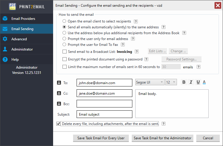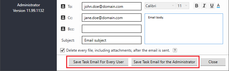 - Save Task Email for Every User - The task email configurations will be saved for every user on the computer.