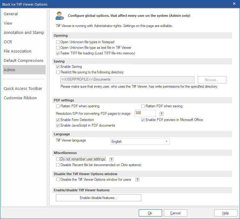 - Enables or Disables the Print annotations option on the Print dialog of Tiff viewer.