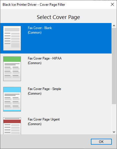 • Start the Cover Page filler before printing – If selected, the built-in Cover Page Filler window appears before printing the document. The "Start the Cover Page filler before Printing" option is not available for PDF file format. To read more about Black Ice Software’s built-in Cover Page Filler, please refer to our Online Manual.