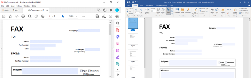 After the printing has finished, the PDF/TIFF document will be opened in the default form filler application.