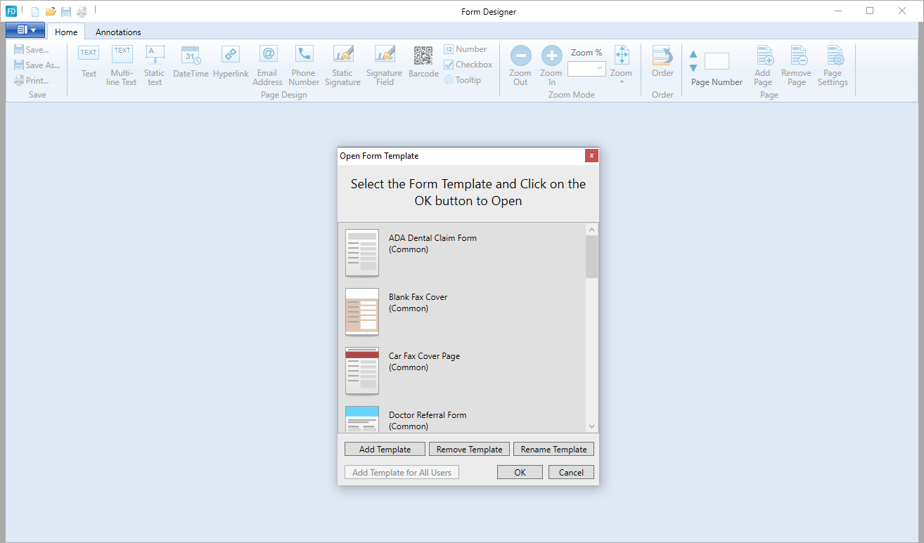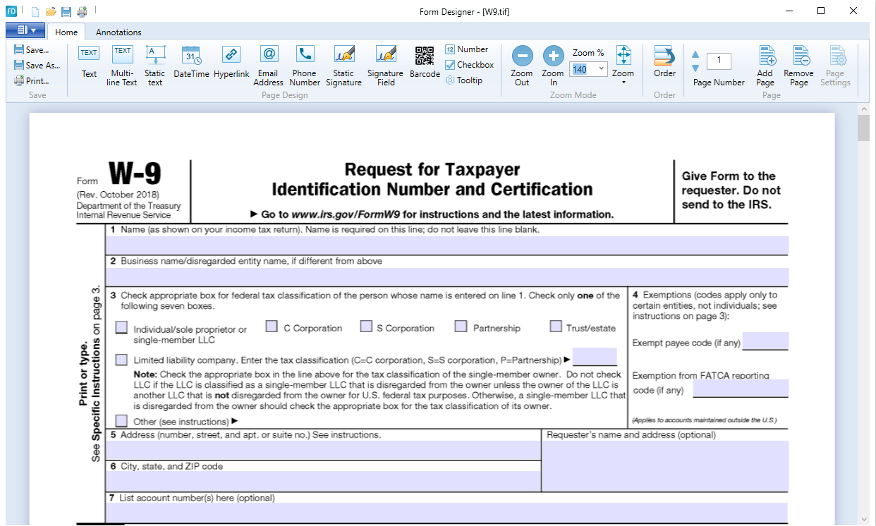 Black Ice Software’s Form Designer is a desktop application designed to create fillable reusable TIFF forms for the medical industry, fax cover pages, governmental forms, or financial forms.