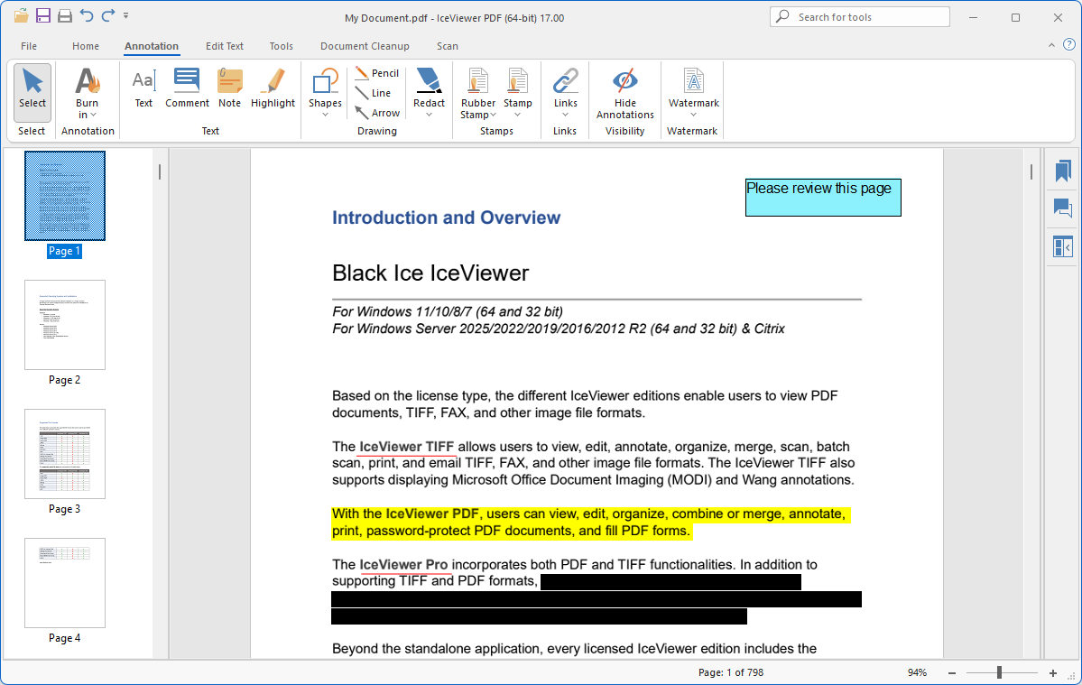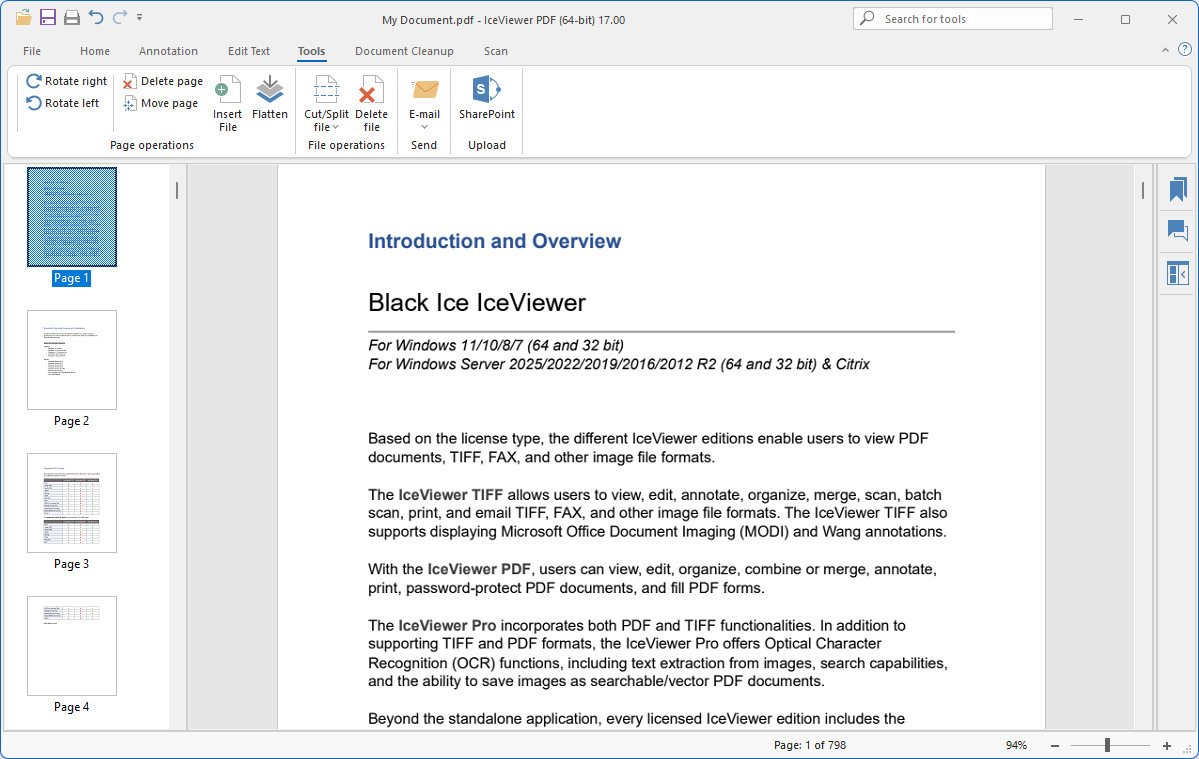 The IceViewer PDF Server allows Terminal Server users to view, print, annotate, organize, search, email, and edit image and searchable/vector PDF documents directly through the standalone user interface.