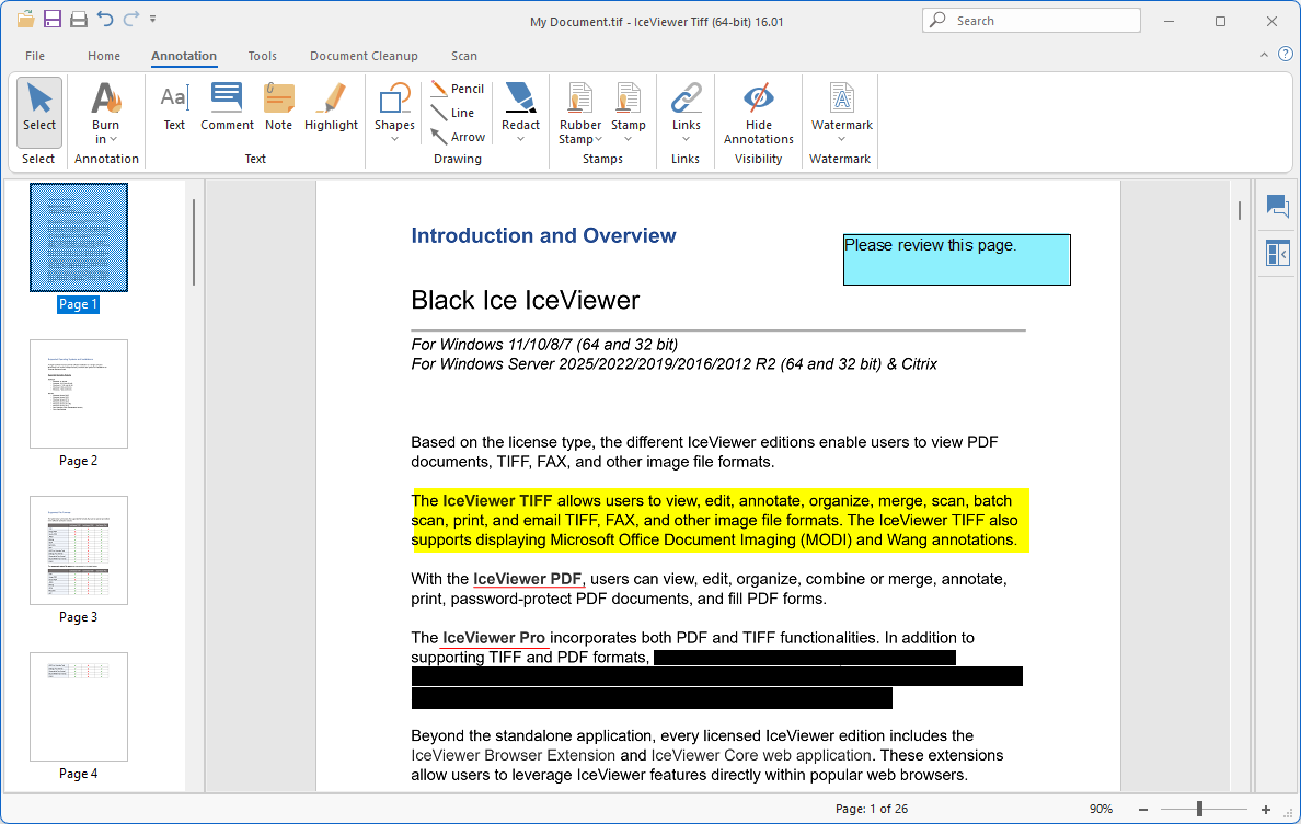 Along with the Standalone application, the IceViewer TIFF includes a Browser Extension and a Web Application for Google Chrome/Microsoft Edge. The IceViewer TIFF supports displaying Microsoft Office Document Imaging (MODI) annotations and Wang annotations.