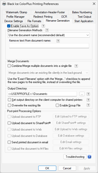 The OEM ColorPlus Printer Driver gives users flexible options to create HIPAA compliant PDF or Tiff files, or save, email, redirect printing, OCR, or Merge documents to a PDF, PDF/A, TIFF, and Fax files.