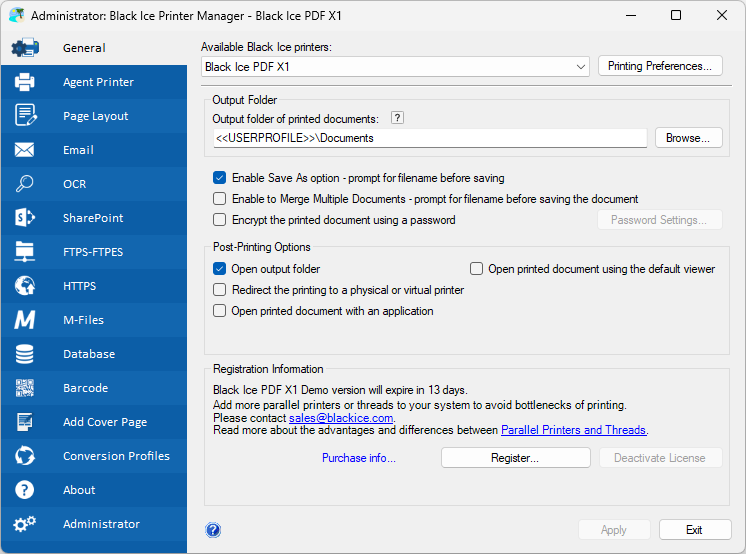 Black Ice PDF X1 Printer Drivers are licensed in several ways depending upon your needs. Black Ice Software offers different licensing models for corporate users and End Users. For more information, please visit the What license do I need? page. Printer Driver is an annual subscription. A single license is valid for a single PC on Windows 11/10 operating systems for one year. For multiple users on the same PC, no additional licenses are required. For installations on different PCs, you will need enough licenses to cover the total number of PCs.*