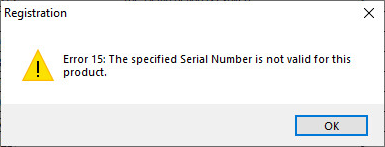 If the serial number is mistyped or incorrect, the following message appears. Click OK to enter the serial number again.