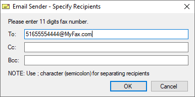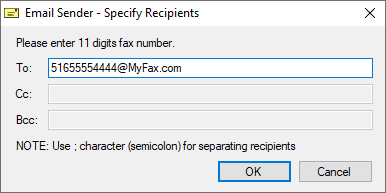 The simplified user interface can be further limited to only use the To: field, by unchecking the Cc: and the Bcc: checkboxes on the Print2Email User interface, as shown in the example below: