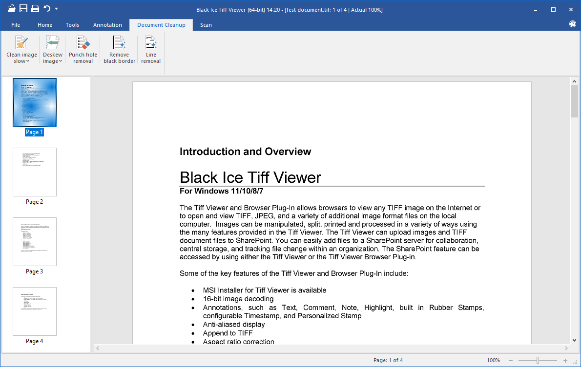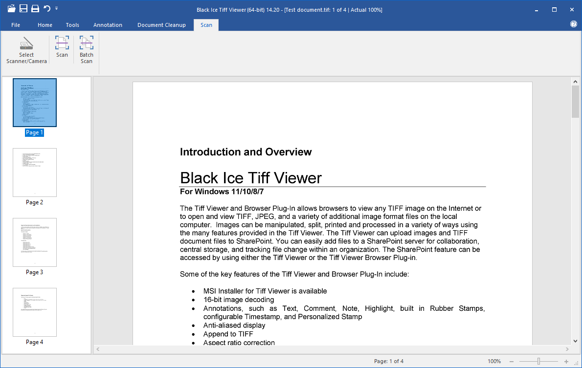 Along with the Standalone application, the TIFF Viewer includes a Browser Extension and a Web Application for Google Chrome/Microsoft Edge. The Tiff Viewer supports displaying Microsoft Office Document Imaging (MODI) annotations and Wang annotations.