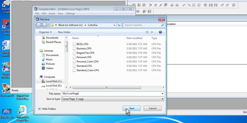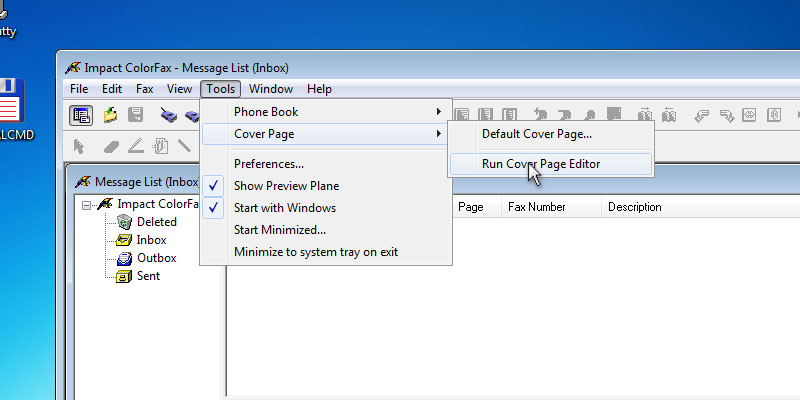 Start the Impact ColorFax from the Start menu.In the Impact ColorFax, go to the Tools > Cover Page > Run Cover Page EditorThe Cover Page Editor appears.In the Cover Page Editor, go to the File > Template Editor...The Template Editor appears. Open a template from the file menu.When the Template is opened, go to the File > New and create a new template.With the toolbar, the user can add text, images, annotations or edit boxes.With the Font icon on the toolbar, the user can specify the style of the added text.Add an Edit Box from the toolbar.Double click on the Edit Box, and the properties dialog will pop up, where the user can specify the title and the type of the Edit Box. If the Destination Name selected, the Impact ColorFax will add the name of the destination from the phone list.When finished editing, Go to File > Save, and save the Template.Go back to the Impact ColorFax, and click on Fax > Send Cover Page...In the Send Cover Page windows, select the destination from the Phone Book, and click on the Send button.Open the created Cover Page.The destination name is on the sent Cover Page. Thank you for using Impact ColorFax. Click here to go back to the Tutorials.